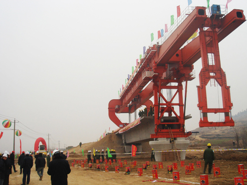 公司主要設(shè)備有:SLJ900T流動(dòng)式運(yùn)架一體機(jī)、SXJ900T/32M分體式架橋機(jī)及運(yùn)梁車、MG450T提梁機(jī)(跨度有35M~40M,起升凈高20~40M)、ME900T提梁機(jī)、SXJ550T/32M一跨式架橋機(jī)及運(yùn)梁車、SGTJ180T鋪架機(jī)等高鐵運(yùn)架設(shè)備。